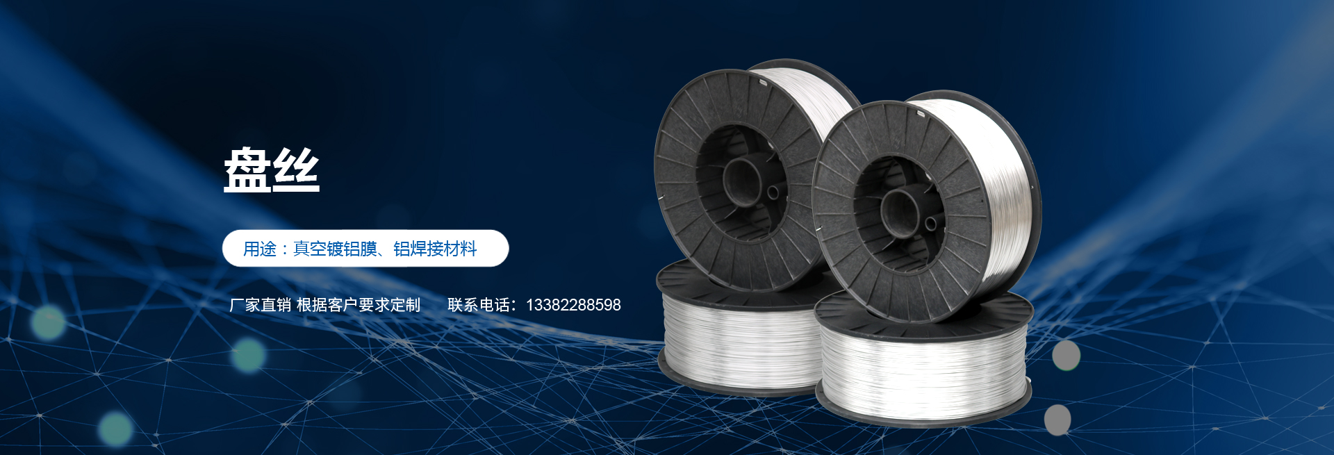 高純度鋁絲:公司主打產(chǎn)品。SGS認證產(chǎn)品,適用于真空鍍鋁。純度99.9%,可為客戶量身定做生產(chǎn)的各盤裝鋁絲、鋁直條。產(chǎn)品應(yīng)用領(lǐng)域十分廣泛,如:真空鍍鋁膜、電器儀表、電子、家電業(yè)、電線電纜業(yè)、建筑裝飾業(yè)、五金裝飾業(yè)、IT電腦業(yè)、廣告裝飾業(yè)、醫(yī)療器械、工藝制品、防腐制品(大型港口、橋梁、碼頭)、食品包裝容器、紡織服裝等。